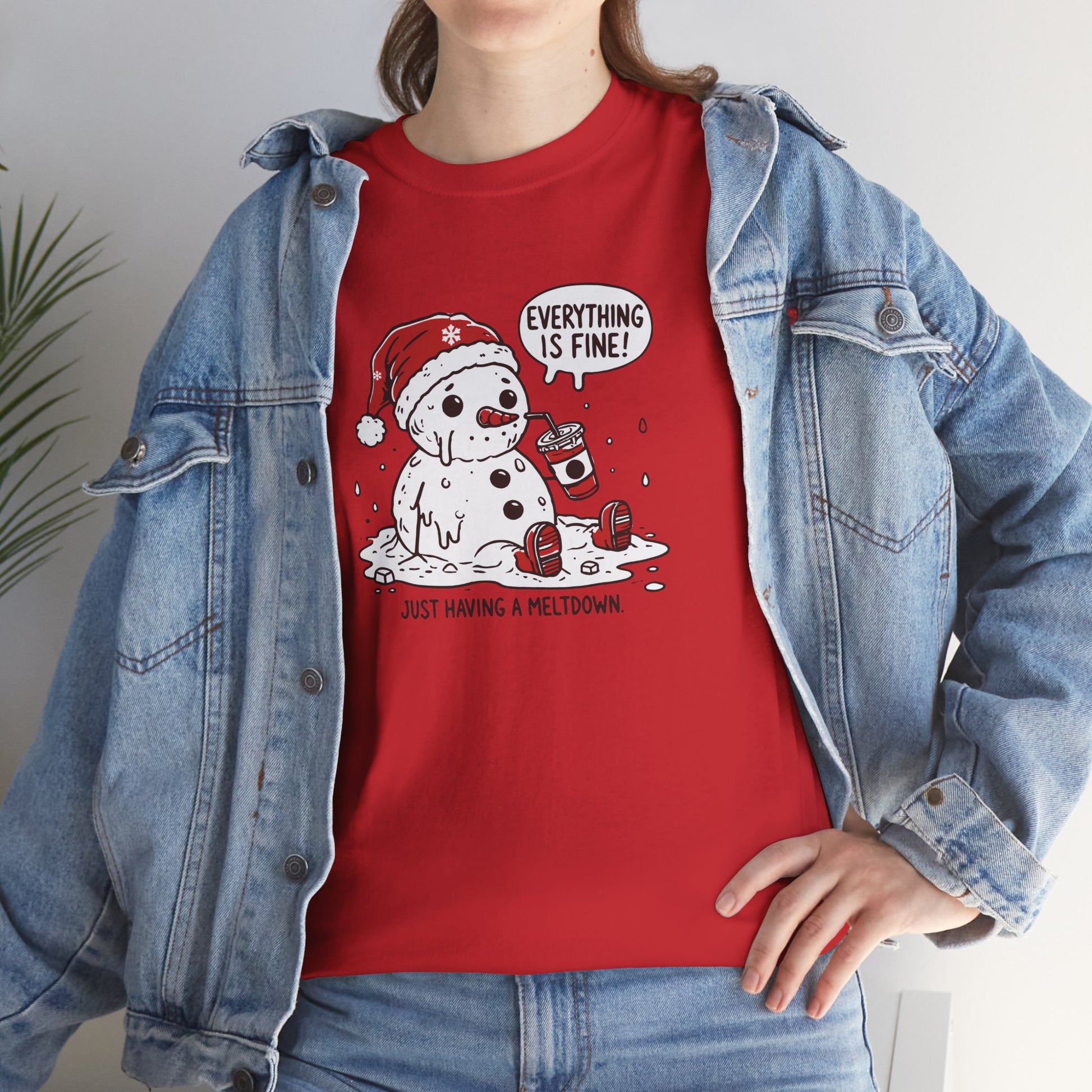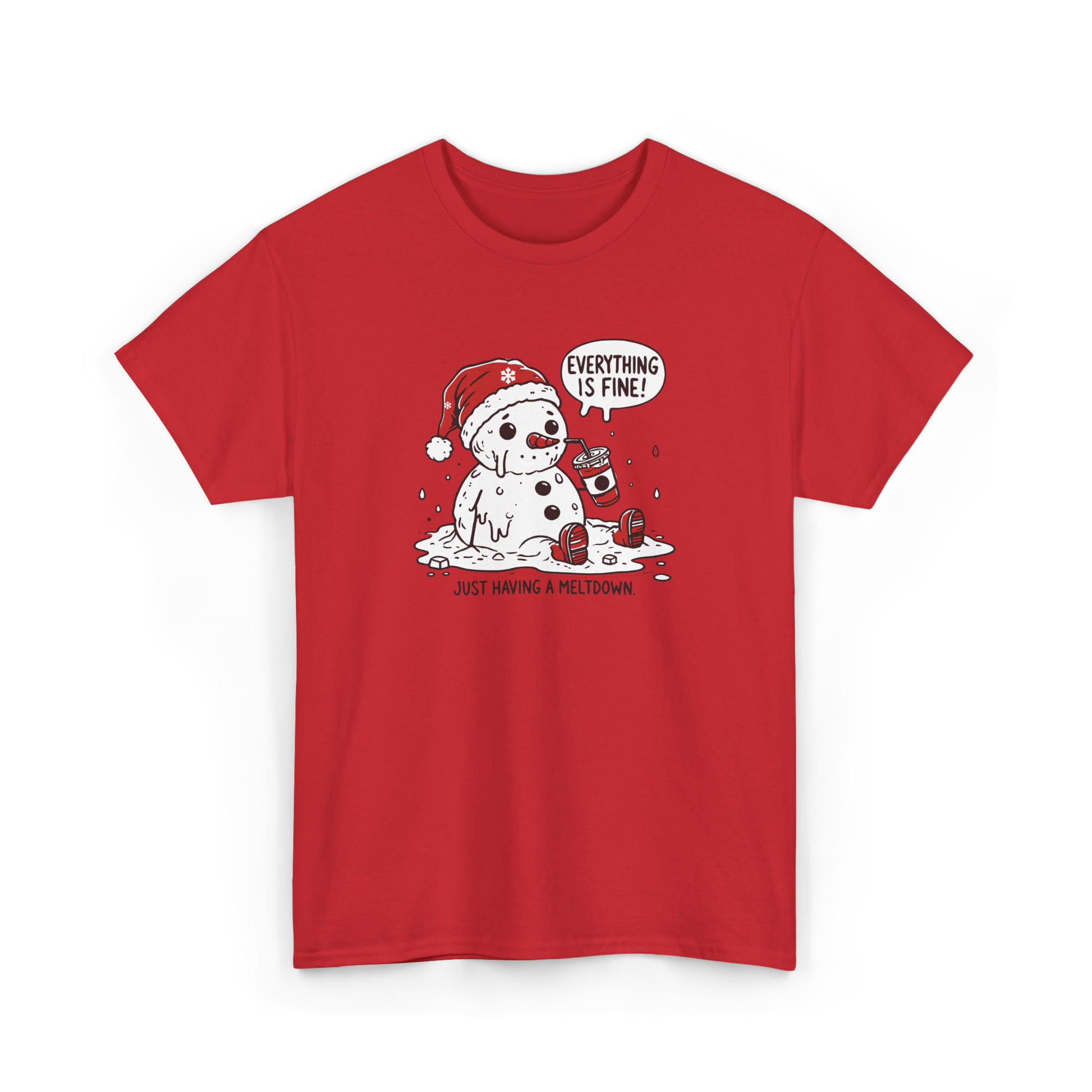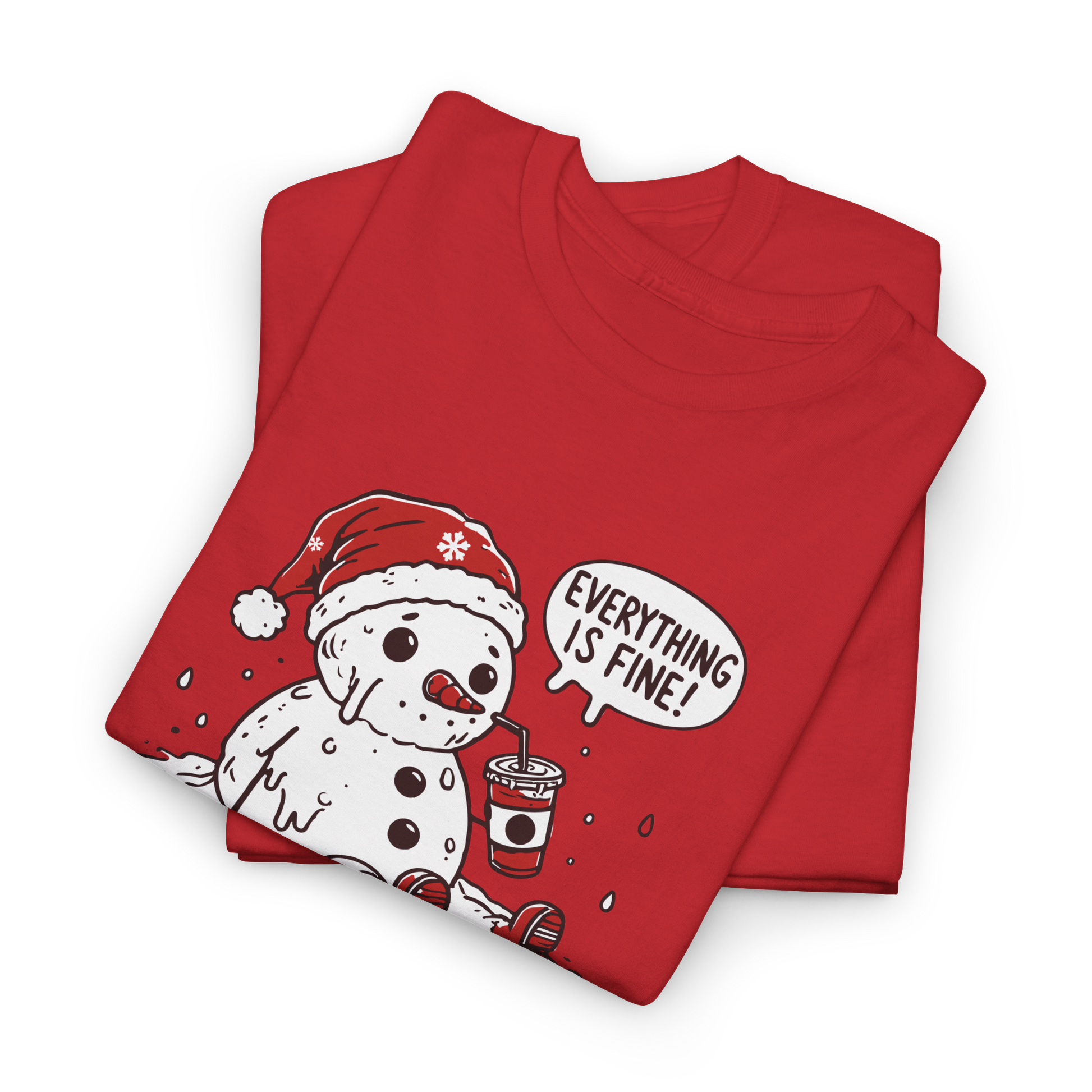 When the holidays get a little too warm (or a little too stressful), this hilarious Melting Snowman T-Shirt says exactly what we’re all thinking. Featuring a cartoon snowman in a Santa hat slowly melting into a puddle while sipping a drink and insisting “Everything is fine!”, this design perfectly blends festive cheer with relatable humor.